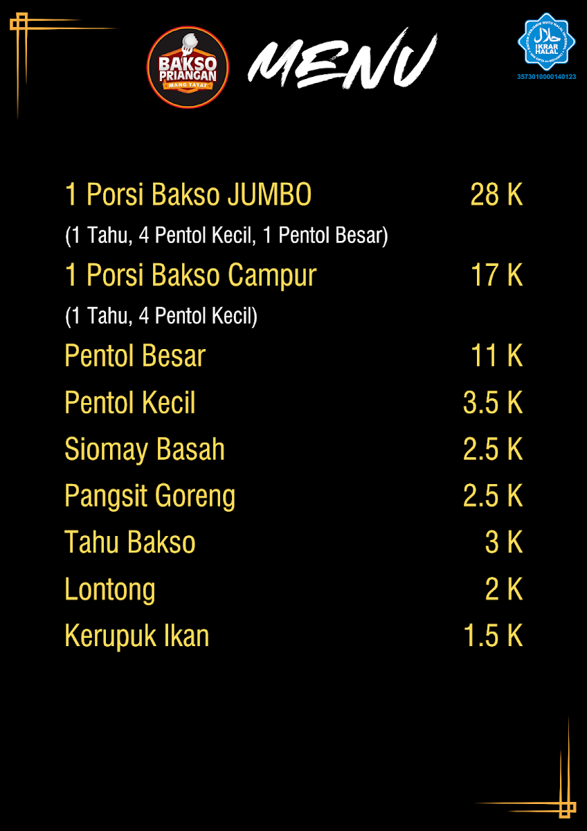 Bakso Priangan Mang Yayat specializes in traditional bakso, a beloved Indonesian meatball that has earned the hearts of many, including frequent visitors who rave about its exceptional flavor. Each bowl showcases delectable meatballs crafted without preservatives, available in various textures, such as smooth and rough. Whether you’re a fan of the classic bakso or eager to explore the unique variations like tofu, there’s something for everyone here.