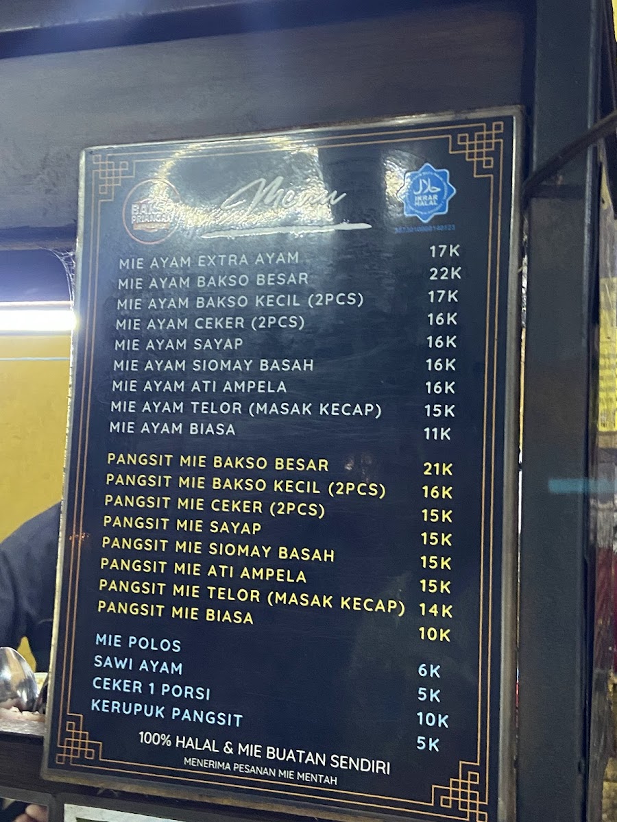 “ A not decent place, just a standard depot besides the road. Don't expect it to be a fancy place. Bakso: Definitely a good one. They say they made it without preservatives. They have some variant like smooth one, rough one, tofu. Definitely a must try menu. Mie/Noodle: Ok. They use a thin noodle. Not really a good one in terms of flavour but still ok. The Gorengan/Fried Dumpling: Really crispy but I don't like the thing in middle of it. It is too gooey. Price wise really really cheap. Place is really crowded as well ”